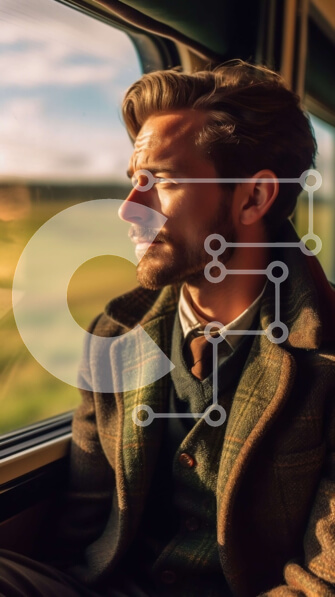 Intra Συλλεκτικό Ξύλινο Παζλ Plywood 4mm – Άνδρας με κοστούμι που κοιτάζει έξω το παράθυρο τρένου – Φωτογραφία Αρχείου Σε Ξύλινο Κουτί – Διαστάσεις Puzzle: 10×10 cm – 25 κομμάτια