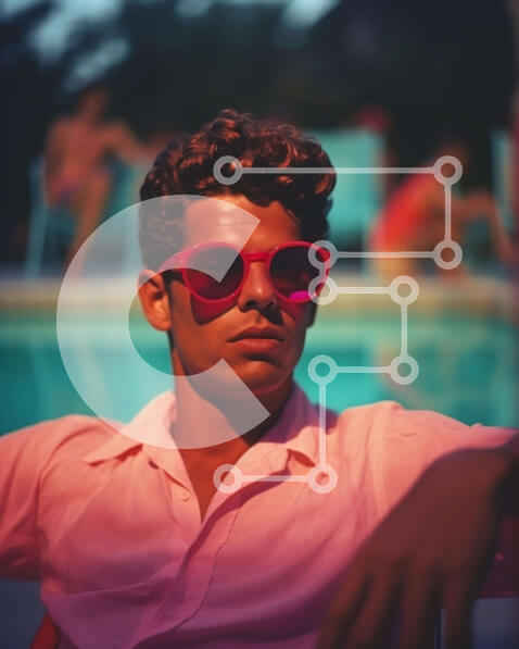 Intra Συλλεκτικό Ξύλινο Παζλ Plywood 4mm – Άνδρας με ροζ γυαλιά ηλίου δίπλα στην πισίνα Σε Ξύλινο Κουτί – Διαστάσεις Puzzle: 10×10 cm – 25 κομμάτια