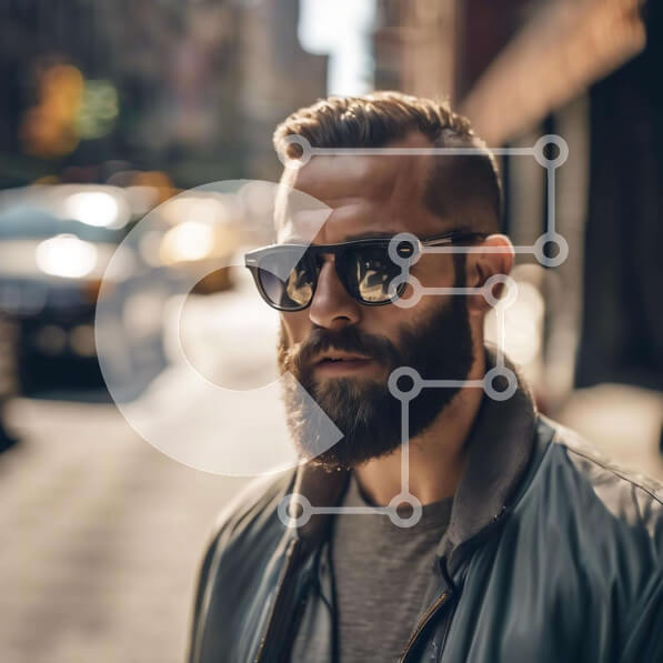 Intra Συλλεκτικό Ξύλινο Παζλ Plywood 4mm – Άνδρας που περπατά στο δρόμο με γυαλιά ηλίου και γενειάδα Σε Ξύλινο Κουτί – Διαστάσεις Puzzle: 10×10 cm – 25 κομμάτια