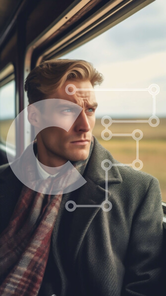 Intra Συλλεκτικό Ξύλινο Παζλ Plywood 4mm – Άνδρας που φορά παλτό και κασκόλ κοιτάζοντας έξω από το παράθυρο του τρένου Σε Ξύλινο Κουτί – Διαστάσεις Puzzle: 10×10 cm – 25 κομμάτια