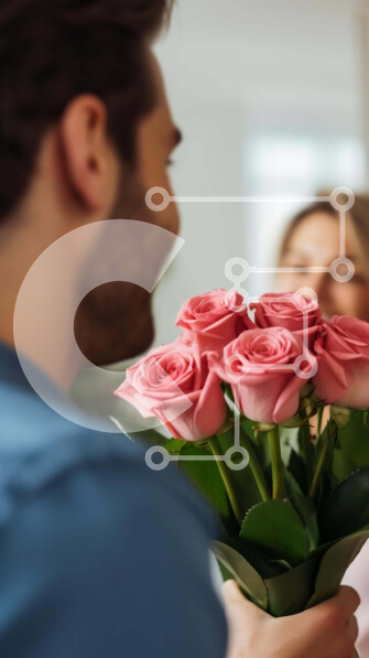 Intra Συλλεκτικό Ξύλινο Παζλ Plywood 4mm – Άνδρας που παρουσιάζει ροζ τριαντάφυλλα στη φίλη του Σε Ξύλινο Κουτί – Διαστάσεις Puzzle: 10×10 cm – 25 κομμάτια