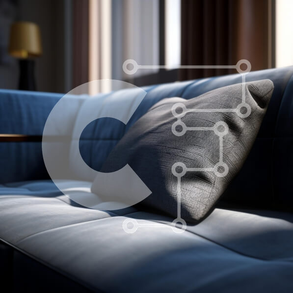 Intra Συλλεκτικό Ξύλινο Παζλ Plywood 4mm – Άνετη γωνία σαλονιού με μπλε καναπέ και σκούρο μαξιλάρι Σε Ξύλινο Κουτί – Διαστάσεις Puzzle: 10×10 cm – 25 κομμάτια