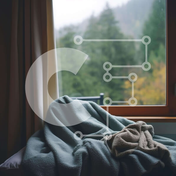 Intra Συλλεκτικό Ξύλινο Παζλ Plywood 4mm – Άνετη μπλε κουβέρτα στο περβάζι παραθύρου με δέντρα στο φόντο Σε Ξύλινο Κουτί – Διαστάσεις: 10×10 cm – 25 κομμάτια