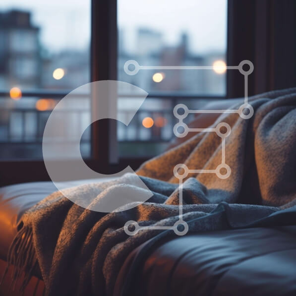 Intra Συλλεκτικό Ξύλινο Παζλ Plywood 4mm – Άνετος καναπές με κουβέρτα δίπλα στο παράθυρο το βράδυ Σε Ξύλινο Κουτί – Διαστάσεις Puzzle: 10×10 cm – 25 κομμάτια