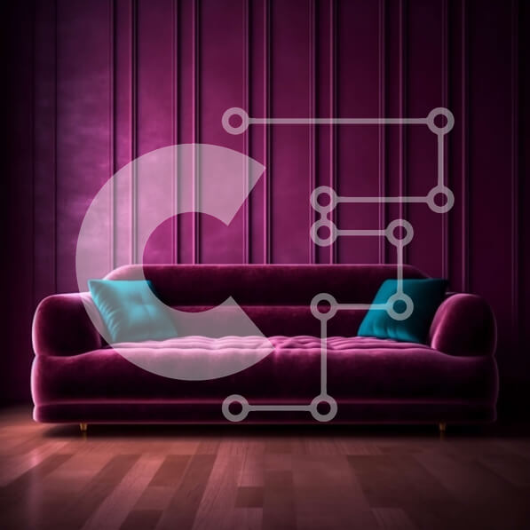 Intra Συλλεκτικό Ξύλινο Παζλ Plywood 4mm – Άνετος μωβ καναπές σε ένα σκοτεινό δωμάτιο με μπλε μαξιλάρια Σε Ξύλινο Κουτί – Διαστάσεις Puzzle: 10×10 cm – 25 κομμάτια