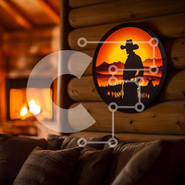 Intra Συλλεκτικό Ξύλινο Παζλ Plywood 4mm – Άνετο εσωτερικό καμπίνας με Cowboy Wall Art Σε Ξύλινο Κουτί – Διαστάσεις Puzzle: 10×10 cm – 25 κομμάτια