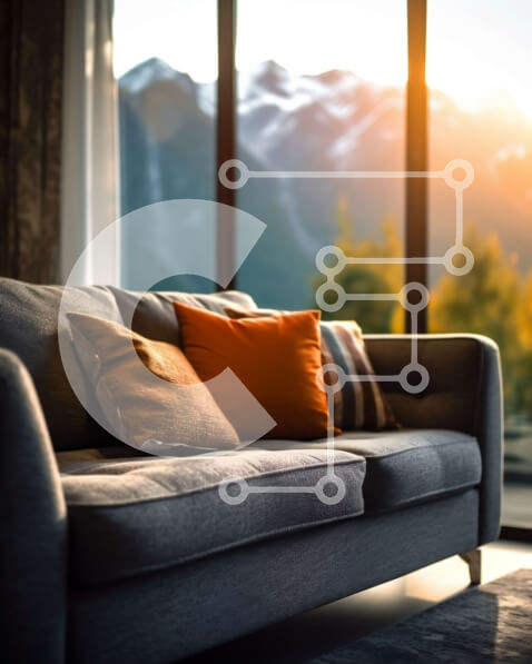 Intra Συλλεκτικό Ξύλινο Παζλ Plywood 4mm – Άνετο σαλόνι με εκπληκτική θέα στα βουνά και το ηλιοβασίλεμα Σε Ξύλινο Κουτί – Διαστάσεις Puzzle: 10×10 cm – 25 κομμάτια