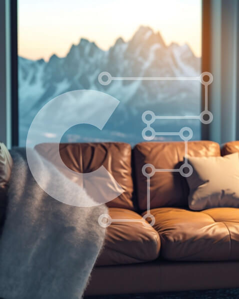 Intra Συλλεκτικό Ξύλινο Παζλ Plywood 4mm – Άνετο σαλόνι με θέα στο βουνό και καφέ δερμάτινο καναπέ Σε Ξύλινο Κουτί – Διαστάσεις Puzzle: 10×10 cm – 25 κομμάτια