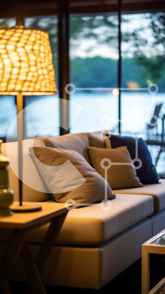 Intra Συλλεκτικό Ξύλινο Παζλ Plywood 4mm – Άνετο σαλόνι με θέα στο νερό Σε Ξύλινο Κουτί – Διαστάσεις Puzzle: 10×10 cm – 25 κομμάτια