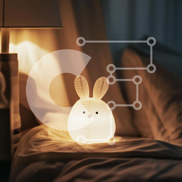 Intra Συλλεκτικό Ξύλινο Παζλ Plywood 4mm – Άνετο φωτιστικό σε σχήμα κουνελιού σε ένα υπνοδωμάτιο Σε Ξύλινο Κουτί – Διαστάσεις Puzzle: 10×10 cm – 25 κομμάτια
