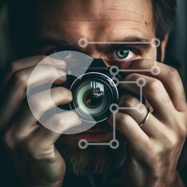 Intra Συλλεκτικό Ξύλινο Παζλ Plywood 4mm – Άνθρωπος που κρατά κάμερα και δαχτυλίδια Σε Ξύλινο Κουτί – Διαστάσεις Puzzle: 10×10 cm – 25 κομμάτια