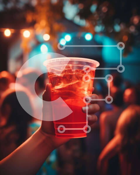 Intra Συλλεκτικό Ξύλινο Παζλ Plywood 4mm – Άτομο που κρατά το κόκκινο πλαστικό κύπελλο στο πάρτι Σε Ξύλινο Κουτί – Διαστάσεις Puzzle: 10×10 cm – 25 κομμάτια