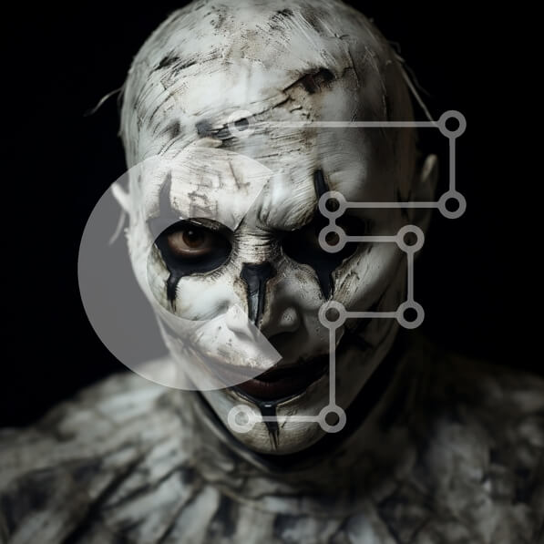 Intra Συλλεκτικό Ξύλινο Παζλ Plywood 4mm – Άτομο που φορά μια λευκή μάσκα κλόουν με μαύρο μακιγιάζ Σε Ξύλινο Κουτί – Διαστάσεις Puzzle: 10×10 cm – 25 κομμάτια