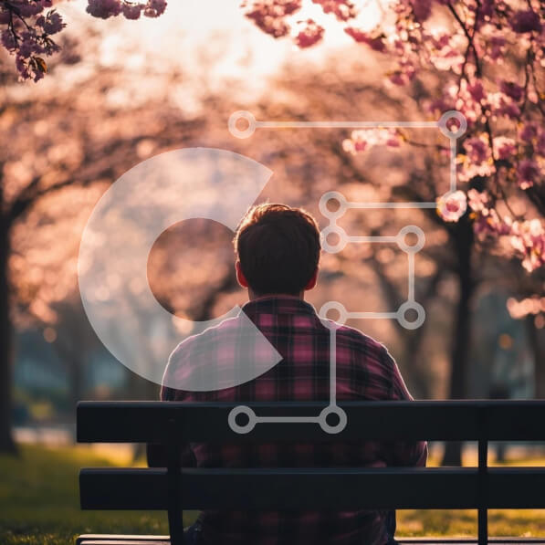 Intra Συλλεκτικό Ξύλινο Παζλ Plywood 4mm – Άτομο που κάθεται σε έναν πάγκο κάτω από τα ανθισμένα δέντρα κερασιών Σε Ξύλινο Κουτί – Διαστάσεις Puzzle: 10×10 cm – 25 κομμάτια