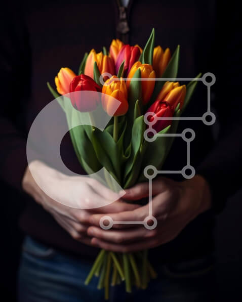 Intra Συλλεκτικό Ξύλινο Παζλ Plywood 4mm – Άτομο που κρατά μια ζωντανή ανθοδέσμη τουλίπας Σε Ξύλινο Κουτί – Διαστάσεις: 10×10 cm – 25 κομμάτια