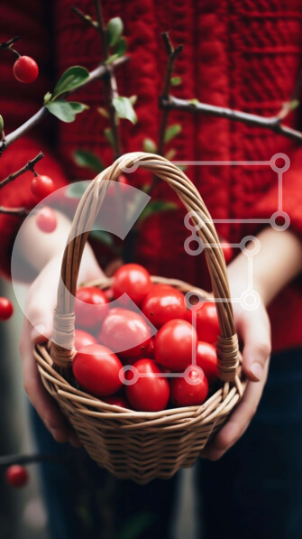 Intra Συλλεκτικό Ξύλινο Παζλ Plywood 4mm – Άτομο που κρατά ανοιχτό καλάθι με κόκκινα μούρα Σε Ξύλινο Κουτί – Διαστάσεις: 10×10 cm – 25 κομμάτια