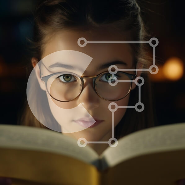 Intra Συλλεκτικό Ξύλινο Παζλ Plywood 4mm – Ένα νεαρό κορίτσι που διαβάζει ένα βιβλίο με γυαλιά Σε Ξύλινο Κουτί – Διαστάσεις Puzzle: 10×10 cm – 25 κομμάτια