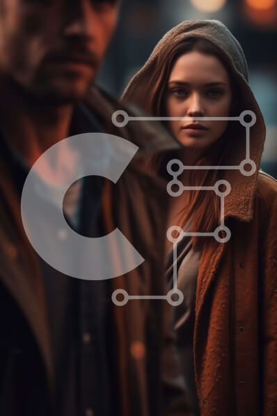 Intra Συλλεκτικό Ξύλινο Παζλ Plywood 4mm – Έντονη στιγμή στο City Street: Woman and Man in Brown and Black Σε Ξύλινο Κουτί – Διαστάσεις Puzzle: 10×10 cm – 25 κομμάτια