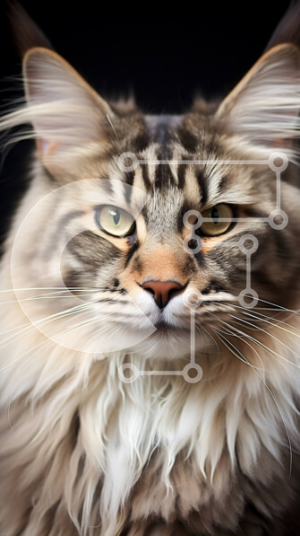 Intra Συλλεκτικό Ξύλινο Παζλ Plywood 4mm – Έντονο βλέμμα: Κοντινή εικόνα μιας χνουδωτής μακρυμάλλης γάτας με λαμπερά πράσινα μάτια Σε Ξύλινο Κουτί – Διαστάσεις: 10×10 cm – 25 κομμάτια
