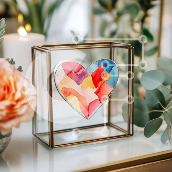Intra Συλλεκτικό Ξύλινο Παζλ Plywood 4mm – Έργο ακουαρέλας σε σχήμα καρδιάς σε γυάλινο πλαίσιο Σε Ξύλινο Κουτί – Διαστάσεις Puzzle: 10×10 cm – 25 κομμάτια