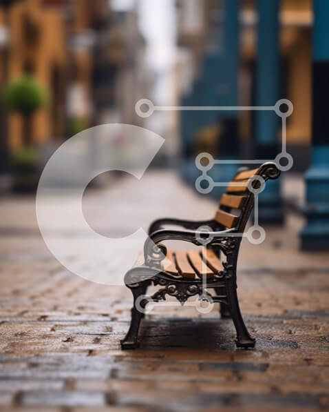 Intra Συλλεκτικό Ξύλινο Παζλ Plywood 4mm – Έρημη σκηνή ενός παλιού ξύλινου πάγκου σε έναν λιθόστρωτο δρόμο σε μια εγκαταλελειμμένη πόλη Σε Ξύλινο Κουτί – Διαστάσεις Puzzle: 10×10 cm – 25 κομμάτια