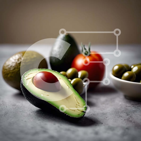 Intra Συλλεκτικό Ξύλινο Παζλ Plywood 4mm – Αβοκάντο, ντομάτες, ελιές και άλλα φρούτα και λαχανικά σε γκρίζο τραπέζι Σε Ξύλινο Κουτί – Διαστάσεις: 10×10 cm – 25 κομμάτια