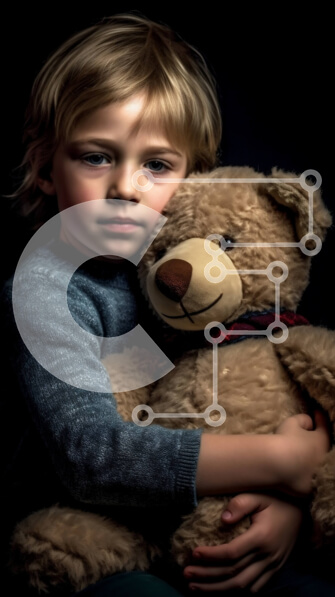Intra Συλλεκτικό Ξύλινο Παζλ Plywood 4mm – Αγόρι που αγκαλιάζει ένα γεμιστό αρκουδάκι με ένα γκρι πουλόβερ Σε Ξύλινο Κουτί – Διαστάσεις Puzzle: 10×10 cm – 25 κομμάτια
