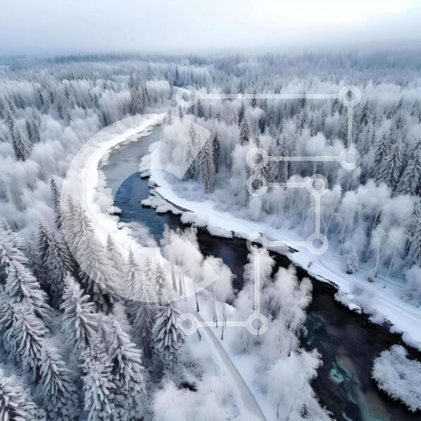 Intra Συλλεκτικό Ξύλινο Παζλ Plywood 4mm – Αεροφωτογραφία του χιονισμένου δάσους και του ποταμού Σε Ξύλινο Κουτί – Διαστάσεις: 10×10 cm – 25 κομμάτια