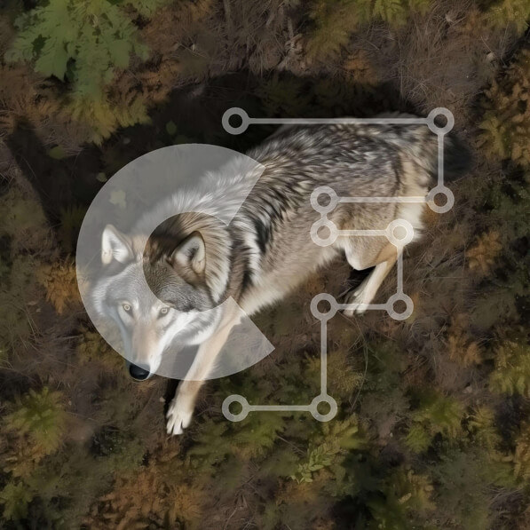 Intra Συλλεκτικό Ξύλινο Παζλ Plywood 4mm – Αεροφωτογραφία του γκρίζου λύκου που στέκεται στο έδαφος Σε Ξύλινο Κουτί – Διαστάσεις: 10×10 cm – 25 κομμάτια
