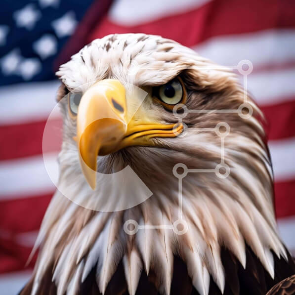 Intra Συλλεκτικό Ξύλινο Παζλ Plywood 4mm – Αετός μπροστά από την αμερικανική σημαία Σε Ξύλινο Κουτί – Διαστάσεις: 10×10 cm – 25 κομμάτια