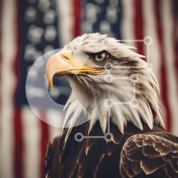 Intra Συλλεκτικό Ξύλινο Παζλ Plywood 4mm – Αετός μπροστά από την αμερικανική σημαία Σε Ξύλινο Κουτί – Διαστάσεις: 10×10 cm – 25 κομμάτια