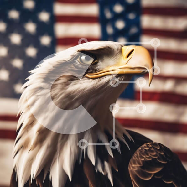 Intra Συλλεκτικό Ξύλινο Παζλ Plywood 4mm – Αετός που στέκεται μπροστά από την αμερικανική σημαία Σε Ξύλινο Κουτί – Διαστάσεις: 10×10 cm – 25 κομμάτια