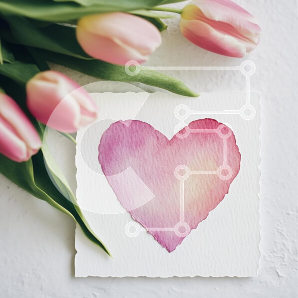 Intra Συλλεκτικό Ξύλινο Παζλ Plywood 4mm – Ακουαρέλα καρδιά με ροζ τουλίπες Σε Ξύλινο Κουτί – Διαστάσεις Puzzle: 10×10 cm – 25 κομμάτια