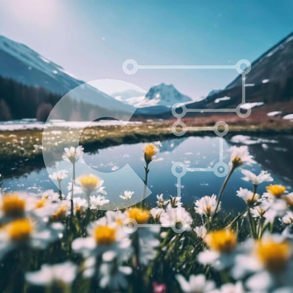 Intra Συλλεκτικό Ξύλινο Παζλ Plywood 4mm – Αλπικό λιβάδι με μαργαρίτες και χιονισμένα βουνά Σε Ξύλινο Κουτί – Διαστάσεις: 10×10 cm – 25 κομμάτια