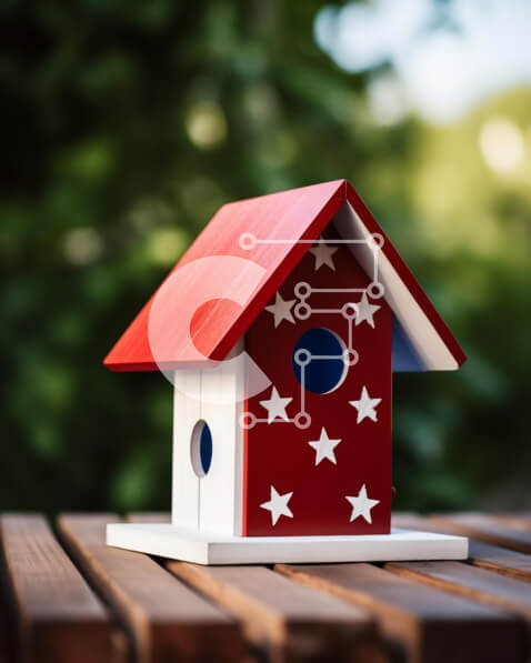 Intra Συλλεκτικό Ξύλινο Παζλ Plywood 4mm – Αμερικανική σημαία Birdhouse σε εξωτερικούς χώρους με πουλιά Σε Ξύλινο Κουτί – Διαστάσεις: 10×10 cm – 25 κομμάτια