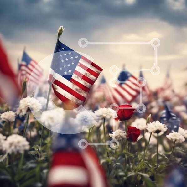 Intra Συλλεκτικό Ξύλινο Παζλ Plywood 4mm – Αμερικανικές σημαίες και λουλούδια στο πεδίο Σε Ξύλινο Κουτί – Διαστάσεις Puzzle: 10×10 cm – 25 κομμάτια