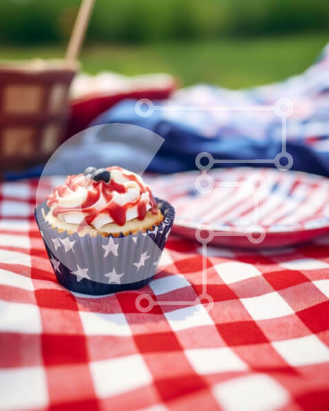 Intra Συλλεκτικό Ξύλινο Παζλ Plywood 4mm – Αμερικανική σημαία Cupcake στο εορταστικό τραπέζι Σε Ξύλινο Κουτί – Διαστάσεις: 10×10 cm – 25 κομμάτια