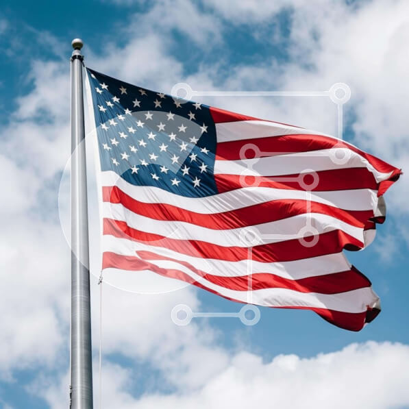 Intra Συλλεκτικό Ξύλινο Παζλ Plywood 4mm – Αμερικανική σημαία ενάντια στο γαλάζιο του ουρανού Σε Ξύλινο Κουτί – Διαστάσεις Puzzle: 10×10 cm – 25 κομμάτια