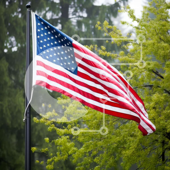 Intra Συλλεκτικό Ξύλινο Παζλ Plywood 4mm – Αμερικανική σημαία που κυματίζει κοντά σε δεντρόφυτη οδό Σε Ξύλινο Κουτί – Διαστάσεις Puzzle: 10×10 cm – 25 κομμάτια