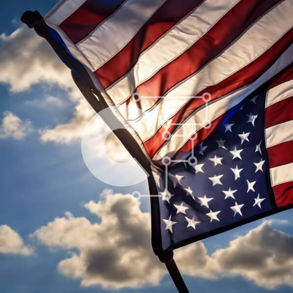 Intra Συλλεκτικό Ξύλινο Παζλ Plywood 4mm – Αμερικανική σημαία που κυματίζει στον άνεμο ενάντια σε έναν συννεφιασμένο ουρανό Σε Ξύλινο Κουτί – Διαστάσεις Puzzle: 10×10 cm – 25 κομμάτια
