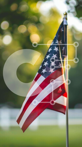 Intra Συλλεκτικό Ξύλινο Παζλ Plywood 4mm – Αμερικανική σημαία που κυματίζει στον άνεμο κοντά στο πράσινο Σε Ξύλινο Κουτί – Διαστάσεις Puzzle: 10×10 cm – 25 κομμάτια