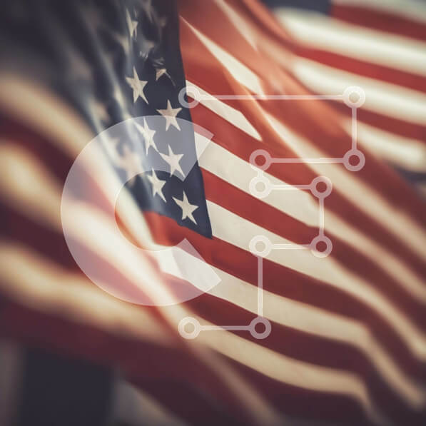 Intra Συλλεκτικό Ξύλινο Παζλ Plywood 4mm – Αμερικανικές σημαίες που κυματίζουν στον άνεμο Σε Ξύλινο Κουτί – Διαστάσεις Puzzle: 10×10 cm – 25 κομμάτια