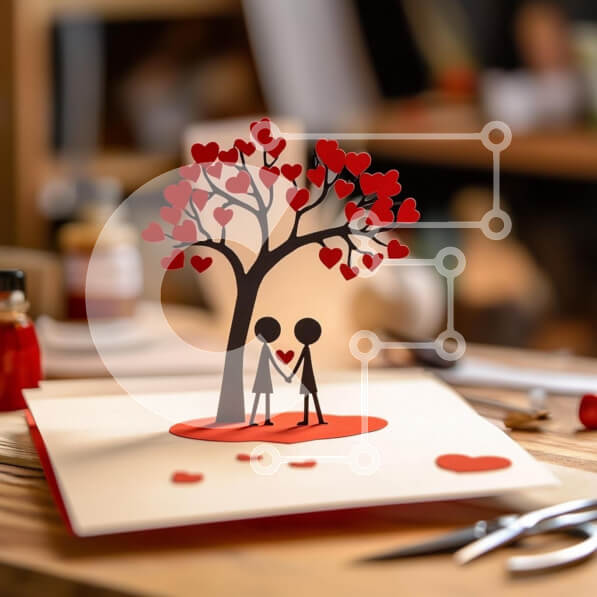 Intra Συλλεκτικό Ξύλινο Παζλ Plywood 4mm – Αναδυόμενη ευχετήρια κάρτα με δέντρο καρδιάς και φιγούρες με ραβδί Σε Ξύλινο Κουτί – Διαστάσεις Puzzle: 10×10 cm – 25 κομμάτια