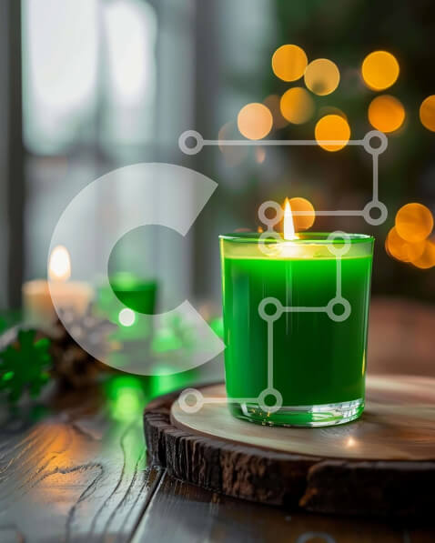 Intra Συλλεκτικό Ξύλινο Παζλ Plywood 4mm – Αναμμένο πράσινο κερί σε ξύλινη σανίδα με χριστουγεννιάτικα στολίδια Σε Ξύλινο Κουτί – Διαστάσεις Puzzle: 10×10 cm – 25 κομμάτια