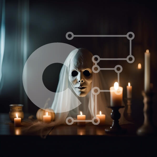 Intra Συλλεκτικό Ξύλινο Παζλ Plywood 4mm – Ανατριχιαστική εικόνα αποκριών με μάσκα φάντασμα και αναμμένα κεριά Σε Ξύλινο Κουτί – Διαστάσεις Puzzle: 10×10 cm – 25 κομμάτια