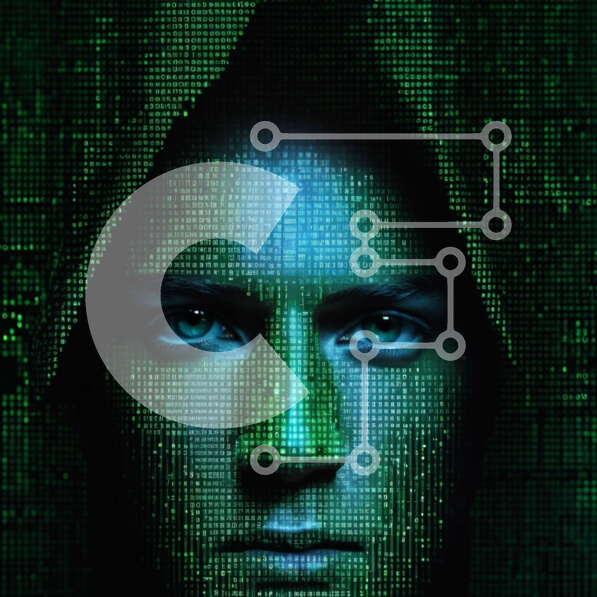 Intra Συλλεκτικό Ξύλινο Παζλ Plywood 4mm – Ανδρικό πρόσωπο καλυμμένο με πράσινα και μπλε εικονοστοιχεία – Έννοια τεχνητής νοημοσύνης Σε Ξύλινο Κουτί – Διαστάσεις Puzzle: 10×10 cm – 25 κομμάτια