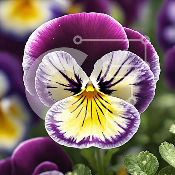 Intra Συλλεκτικό Ξύλινο Παζλ Plywood 4mm – Ανθισμένοι μοβ και κίτρινοι πανσέδες με πράσινα φύλλα Σε Ξύλινο Κουτί – Διαστάσεις: 10×10 cm – 25 κομμάτια