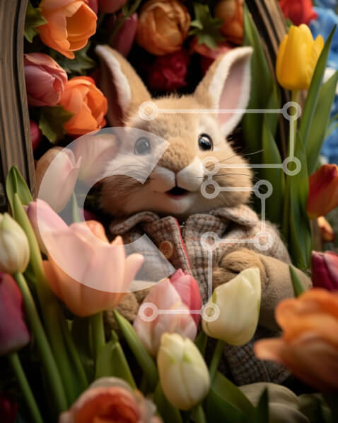 Intra Συλλεκτικό Ξύλινο Παζλ Plywood 4mm – Ανοιξιάτικη σκηνή με γεμιστό λαγουδάκι και πολύχρωμες τουλίπες Σε Ξύλινο Κουτί – Διαστάσεις Puzzle: 10×10 cm – 25 κομμάτια