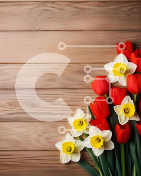 Intra Συλλεκτικό Ξύλινο Παζλ Plywood 4mm – Ανοιξιάτικα λουλούδια μπουκέτο σε ξύλινο φόντο Σε Ξύλινο Κουτί – Διαστάσεις: 10×10 cm – 25 κομμάτια