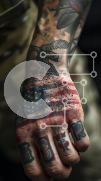 Intra Συλλεκτικό Ξύλινο Παζλ Plywood 4mm – Αντρικό χέρι με αμερικανική σημαία και τατουάζ πουλιών Σε Ξύλινο Κουτί – Διαστάσεις Puzzle: 10×10 cm – 25 κομμάτια